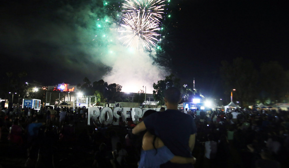 The Rose Bowl’s annual AmericaFest fireworks show, billed as the largest in the Southland, went off without a hitch last night, exploding more than a ton of special effects fireworks in a city which outlaws street-level fireworks.